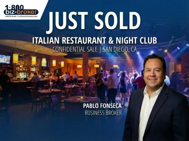 San Diego, CA — 1-800-Biz-Broker, a business brokerage serving the Inland Empire, Orange County, and San Diego County, today announced the successful sale of Salvatore’s Cucina & Lounge, a well-known restaurant and lounge located in the Gaslamp Quarter of Downtown San Diego. Pablo Fonseca, Business Broker at 1-800-Biz-Broker, represented the parties in the transaction. The…